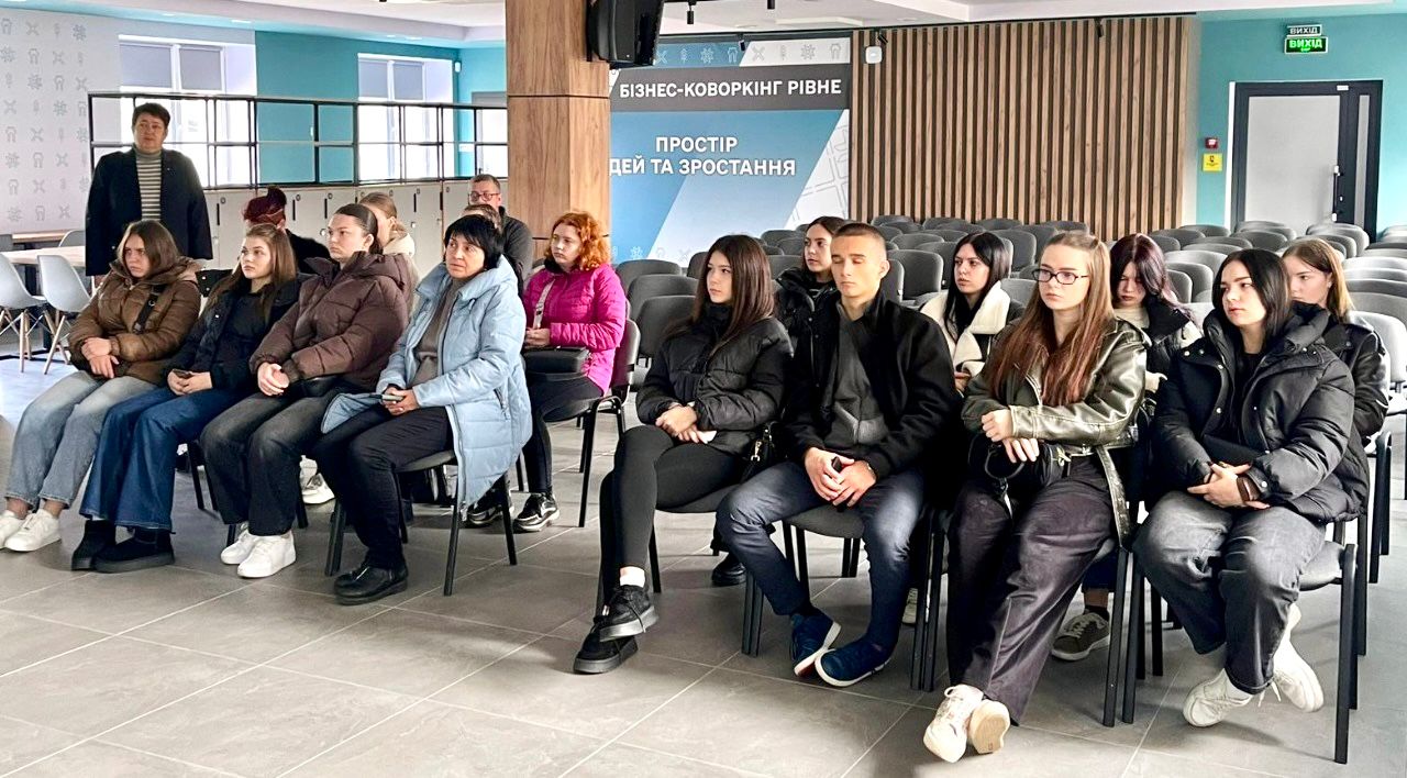 At the end of the tour, students visited the “Support Rivne” platform — a new space for interaction between business, local authorities, and the community within the Rivne Business Co-working Space.